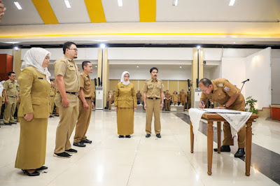 "Saya juga berpesan untuk terapkan nilai-nilai berakhlak, kembangkan komunikasi yang positif di setiap lini saat bertugas serta ciptakan inovasi untuk terus meningkatkan pelayanan publik serta bangunlah sinergitas dan kebersamaan dengan seluruh unsur perangkat daerah untuk memaksimalkan pencapaian program dan target pembangunan," ungkapnya.