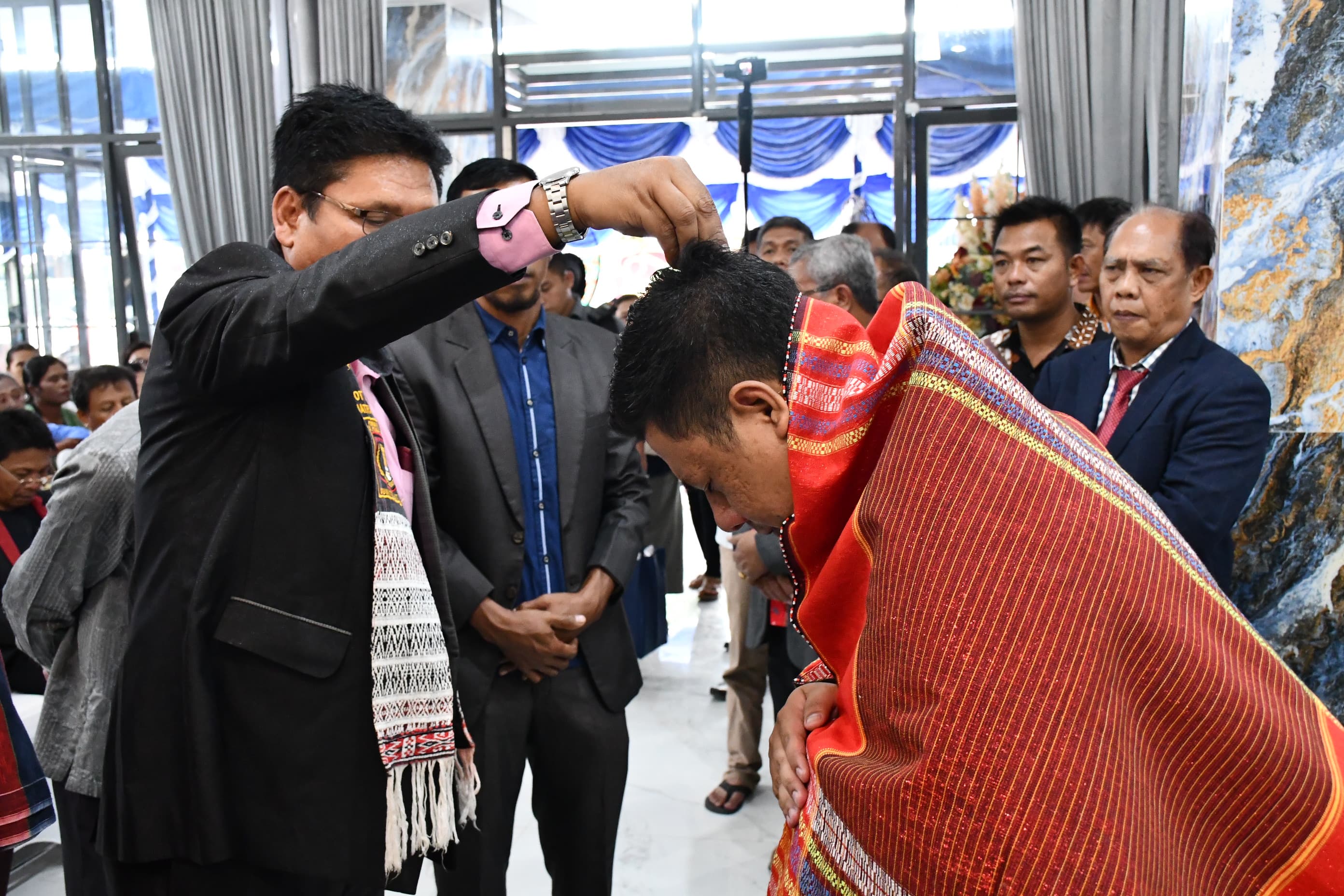 Acara Adat pada saat Bupati Samosir Vandiko T. Gultom dan keluarga memasuki rumah pribadi |